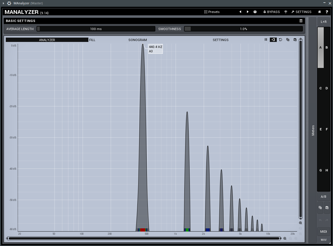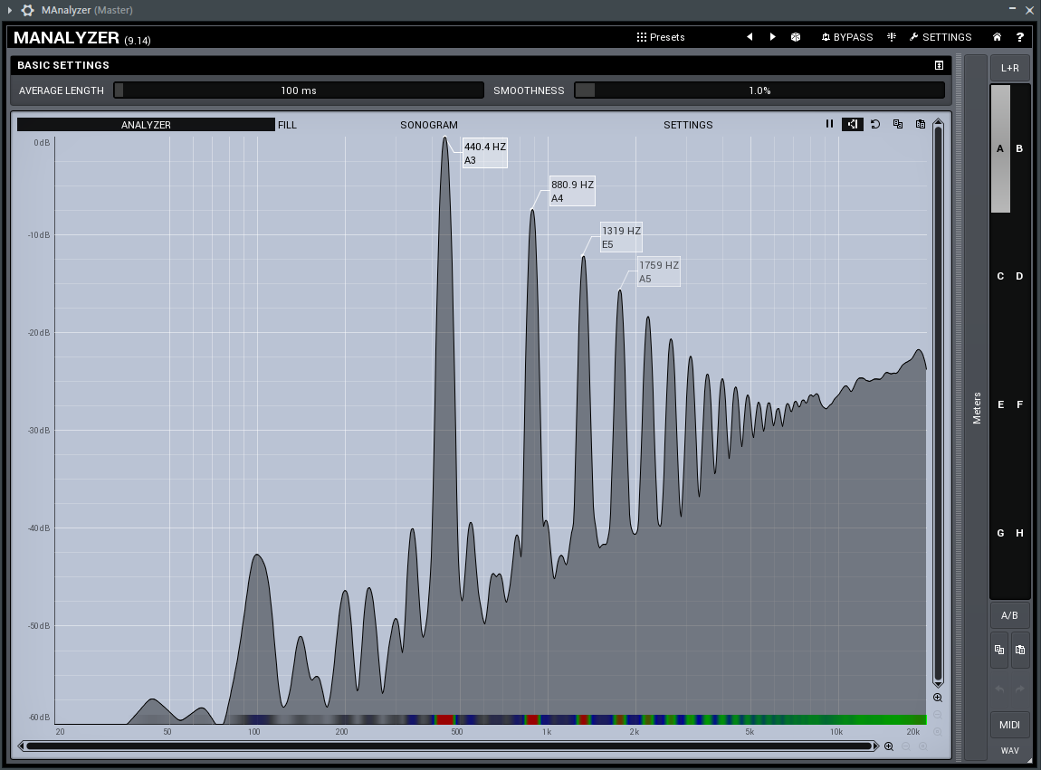 Beim folgenden Beispiel handelt es sich um die besonderen Wellen des Round Saw, alle gespielt auf dem Kammerton A4. Lasst euch nicht von dem A3 verwirren. Das liegt daran, dass das VST eine andere Skala verwendet, die bei Minus-Noten beginnt.