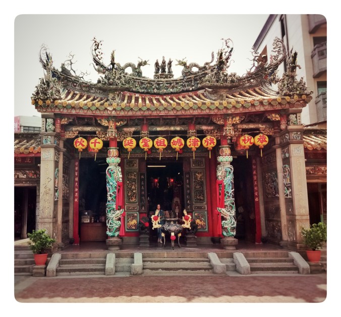 Am Freitag stand ein Ausflug auf die benachbarte Insel Qijin auf dem Programm. Die Insel liegt südwestlich von Kaohsiung und ist ein bekannter Touristenort. Mit einer Fähre erreichten wir die Insel, zu deren Attraktionen ein der daoistischen Göttin Mazu gewidmeter Tempel sowie ein großer Markt zählen. Wir mieteten uns Fahrräder und erkundeten den Ort auf diese Weise. Auch hatten wir die Gelegenheit, den Strand zu besuchen und einen Fuß ins Meer zu setzen. 30 Grad sind in Taiwan übrigens normal. Hinzu kommt eine hohe Luftfeuchtigkeit und das schwüle Wetter machte uns anfangs zu schaffen.