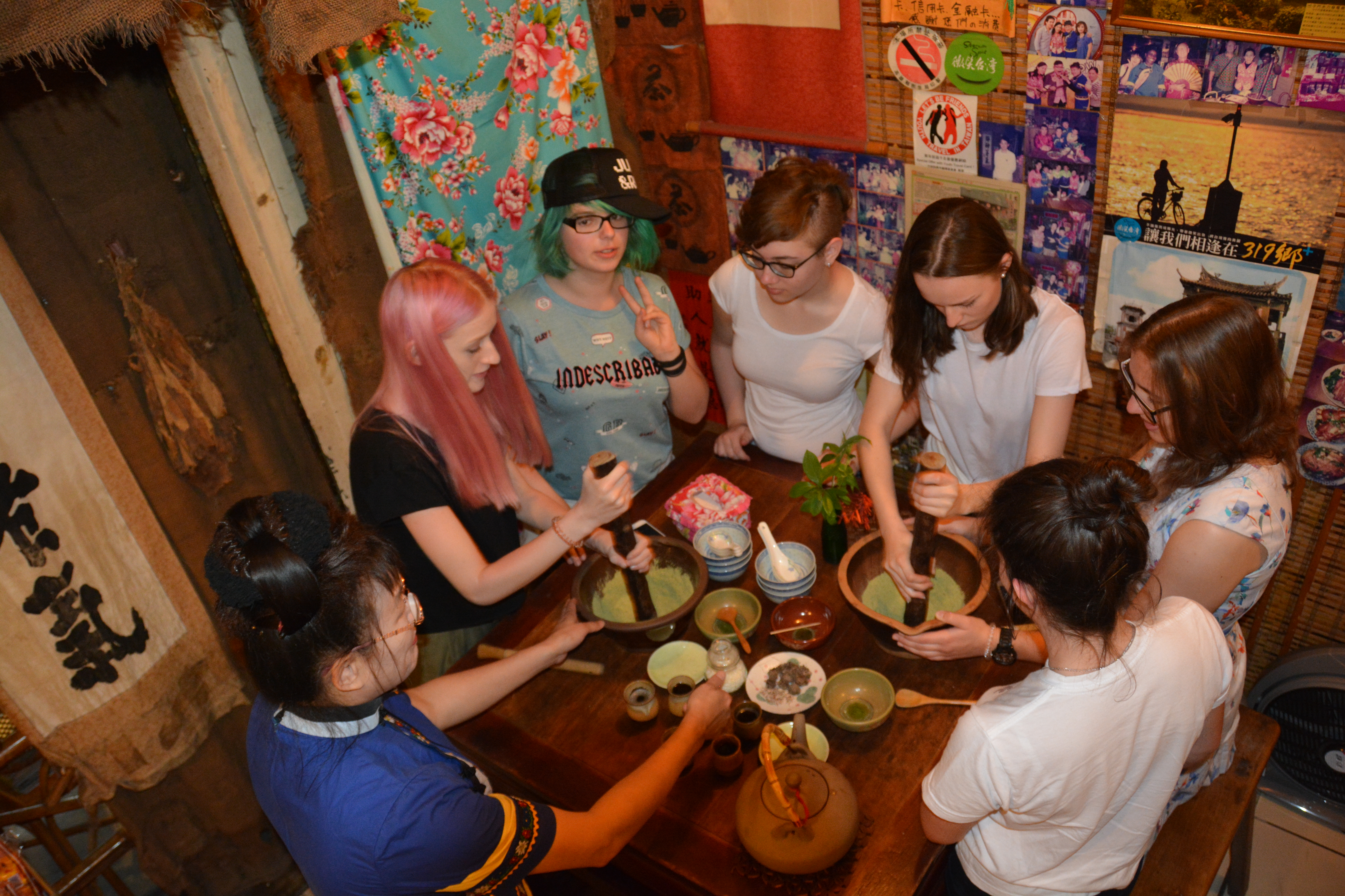 Die Wochenenden verbrachten wir größtenteils in den Gastfamilien und hatten hier besonders die Gelegenheit, uns ein Bild vom Alltag der Menschen in Taiwan zu machen. Unterrichtsbesuche sowie die Teilnahme an einem Kurs im Kochen (chinesische Teigtaschen), in Kalligrafie und in chinesischer Sprache, durften natürlich auch nicht fehlen. Ein Seminar mit dem Thema „Tee kochen – aber richtig“ gehörte natürlich in der Heimat des bekannten Oolong-Tees ebenfalls zum Pflichtprogramm.