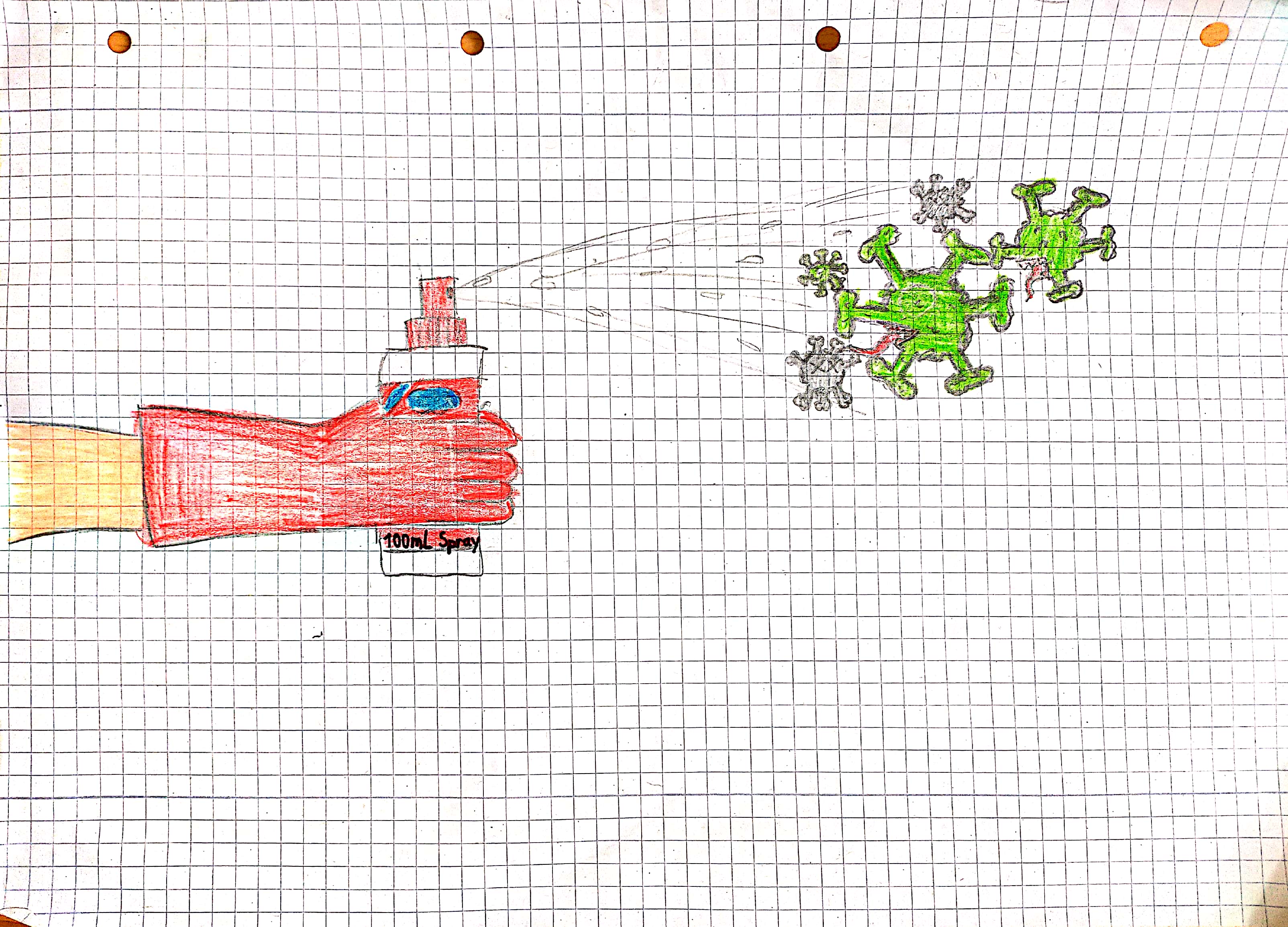 Leander Schütz, Klasse 5b, erinnert uns alle mit seiner Zeichnung daran, Corona weiterhin erstzunehmen und die Hygieneregeln einzuhalten. Danke für das Bild!