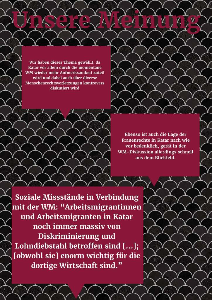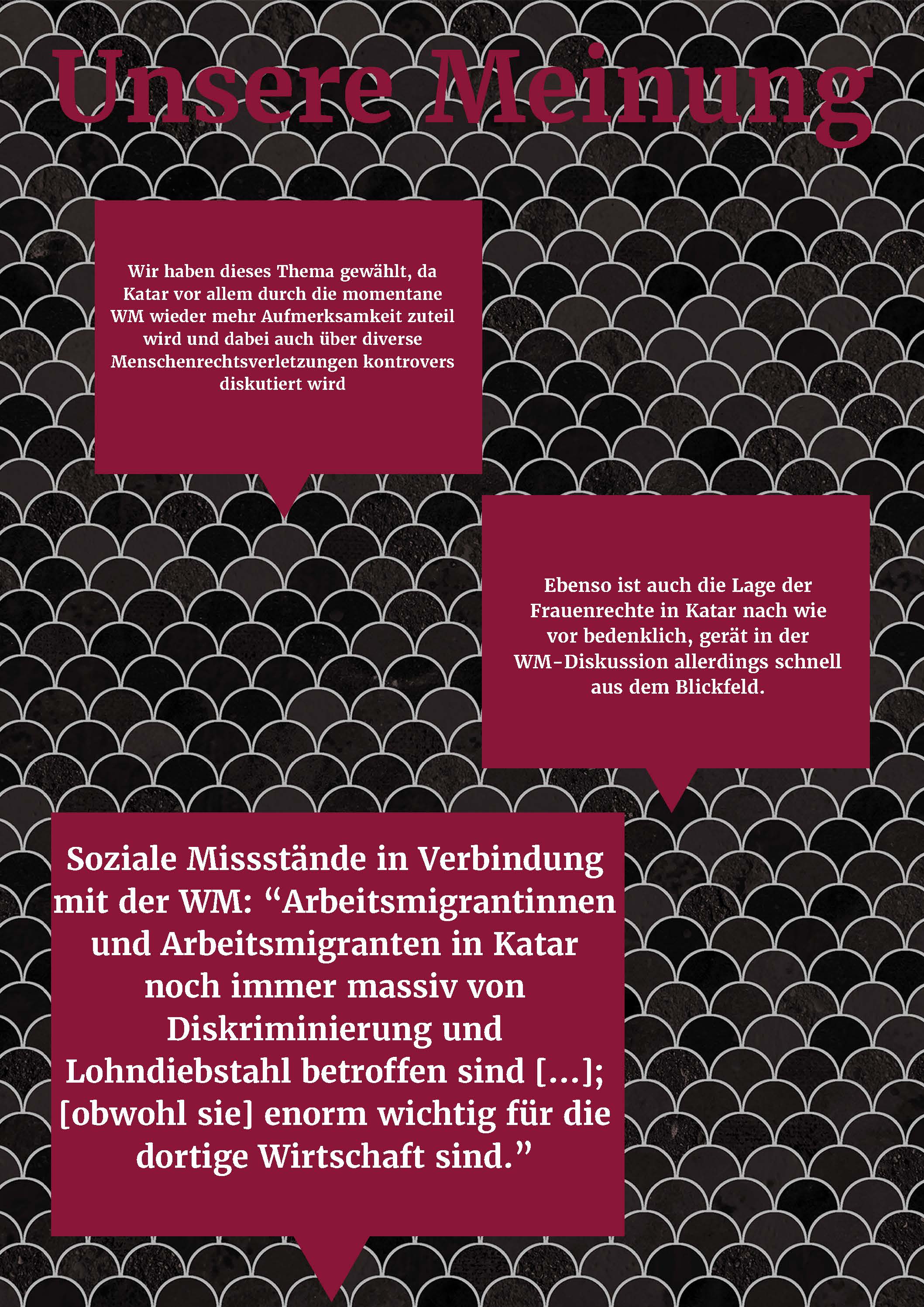 Weiter geht es diese Woche mit einer illustrierten Info-Broschüre der Klasse 10c zum Thema „Katar“: