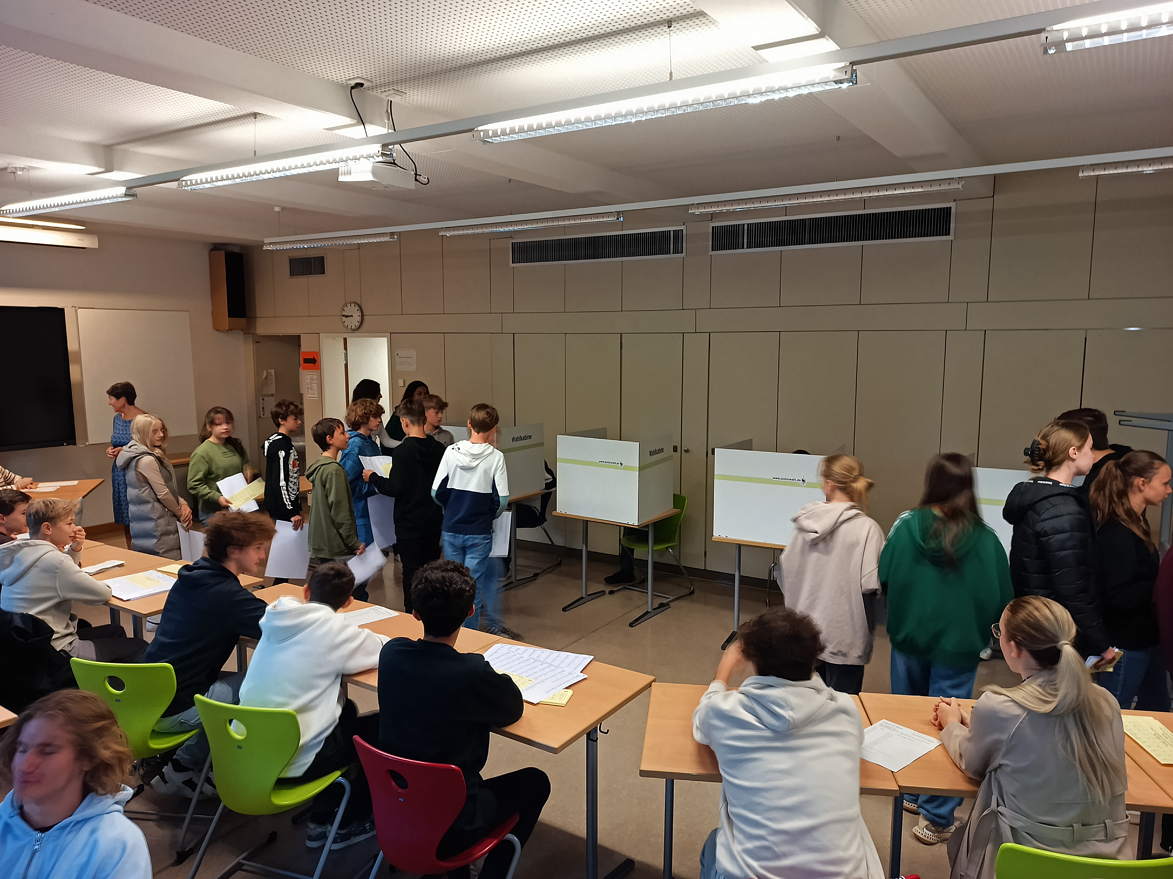 Geplant und ausgeführt wurde der Wahltag von der Klasse 10d. Die Schülerinnen und Schüler sorgten dafür, dass im Wahlraum alles geordnet und v.a. korrekt ablief und zeichnete sich auch verantwortlich für die Auszählung der Stimmen.