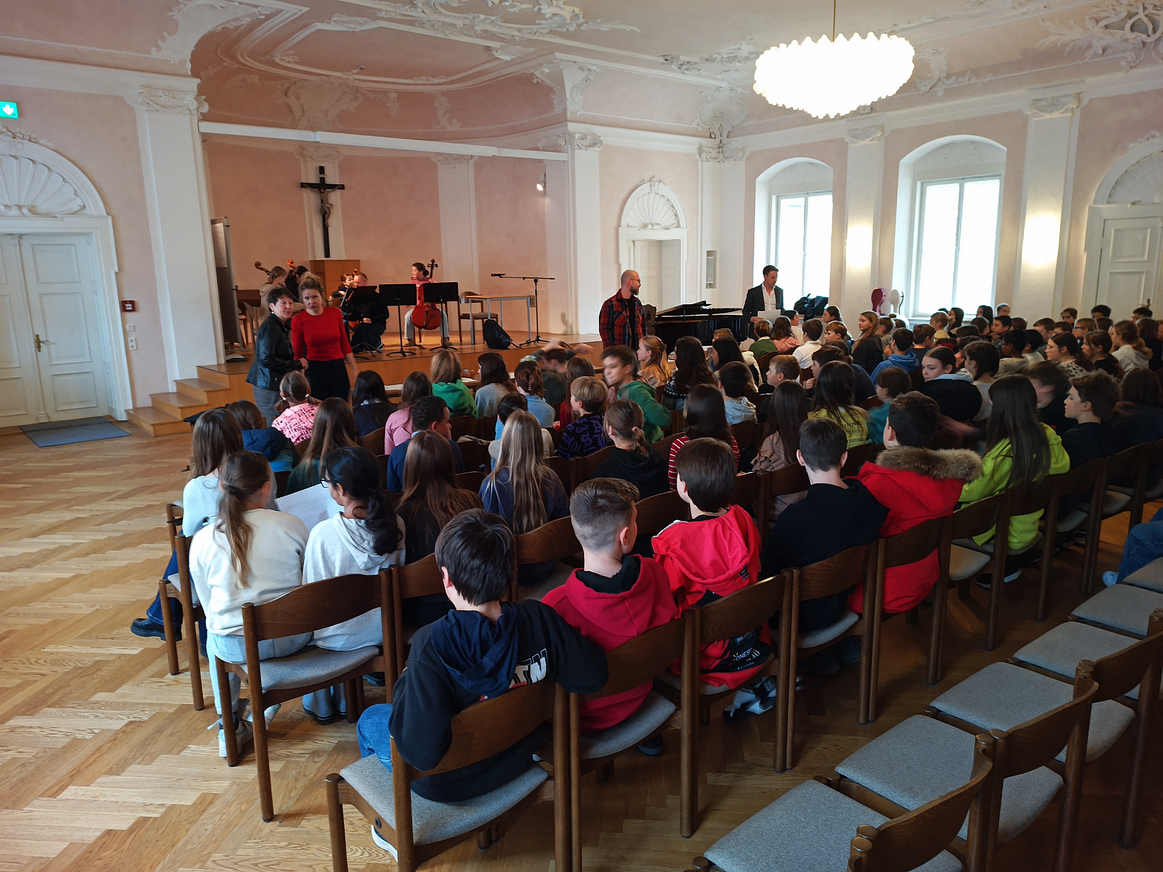 Musikalisch eingestimmt wurden alle durch das Cello-Quartett mit Robert Schumanns „Fröhlicher Landmann“ sowie Beethovens „Menuett“. Zwischen den Stücken eröffnete unsere Schulleiterin Frau Weger die Veranstaltung. Wir bitten zu entschuldigen, dass aus Speicherplatzgründen leider nicht alle musikalischen Darbietungen veröffentlicht werden können.