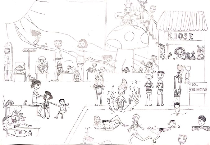 Mona Seisenberger, 5d, wünscht sich mit diesem Bild den unbeschwerten Aufenthalt im sommerlichen Schwimmbad. Danke dafür!